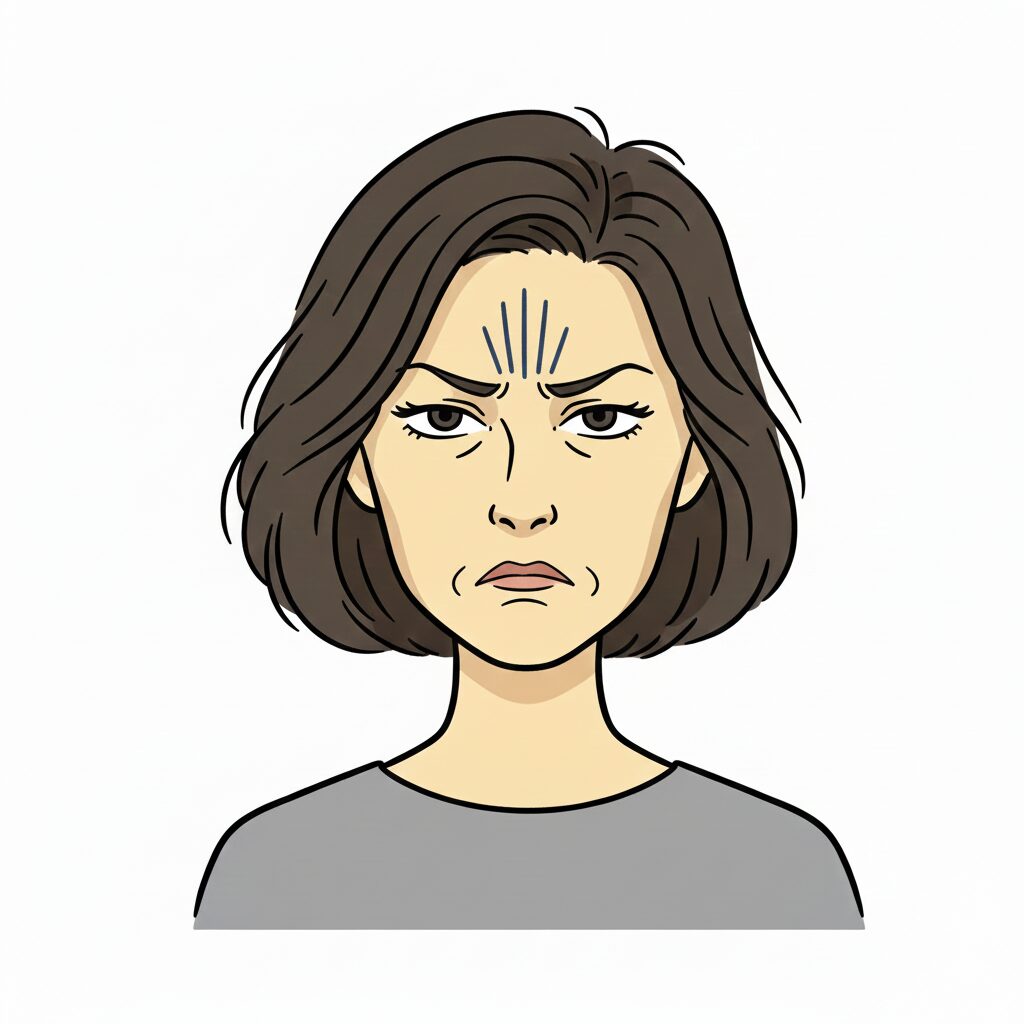 • 「不満のシワ」の形状記憶:常に何かをジャッジ(批判)したり、不満を抱えたりしていると、眉間のシワや下がった口角が「筋肉の癖」として定着します。
